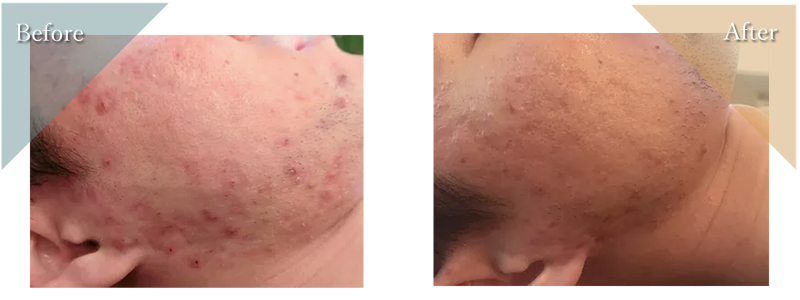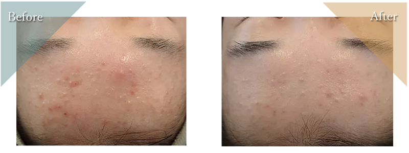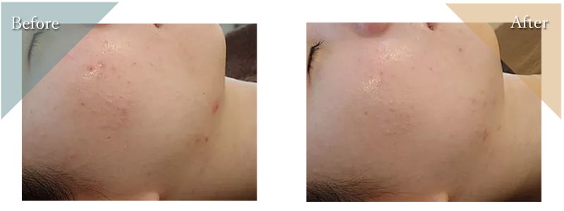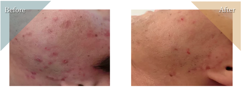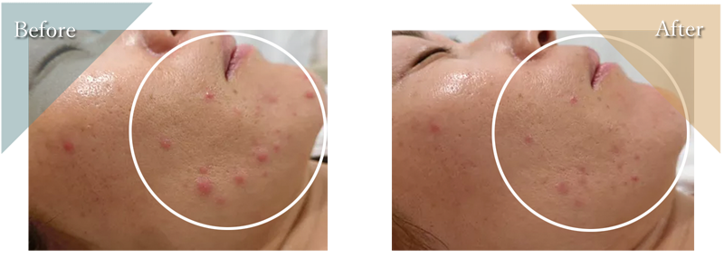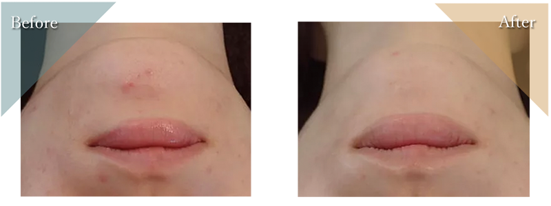4回施術後光フェイシャルの殺菌効果で、赤く腫れて炎症していた吹き出物も改善されました!