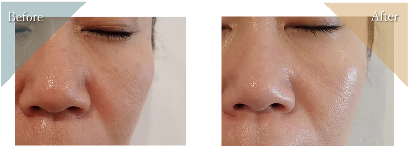 2回施術後紫外線ダメージによるシミがあきらかに薄く小さくなり、頬の赤みも改善されました!